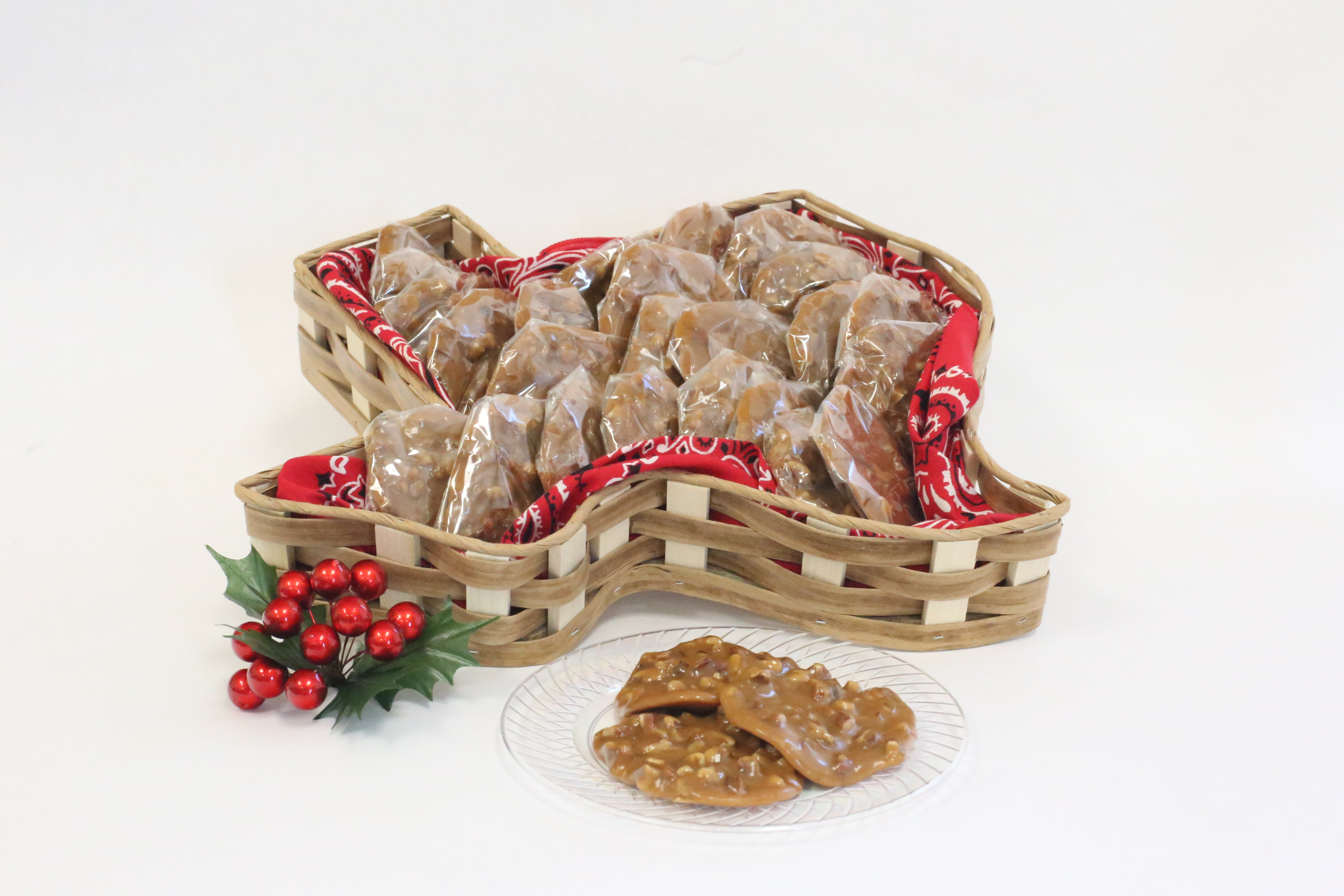 Our bandana-lined Texas KICKERS® Praline Baskets are perfect to sit out at the office or a party. Choose a dozen or two-dozen individually wrapped KICKERS® Pralines.