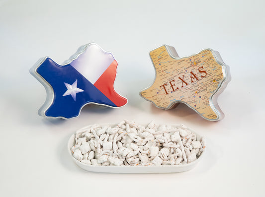 Discover the taste of Texas with our Road Map Texas Tin! Each tin is filled with our famous Texas Trash, perfect for snacking on-the-go. college students or Alumni. Order now and experience the best of Texas in one delicious tin!